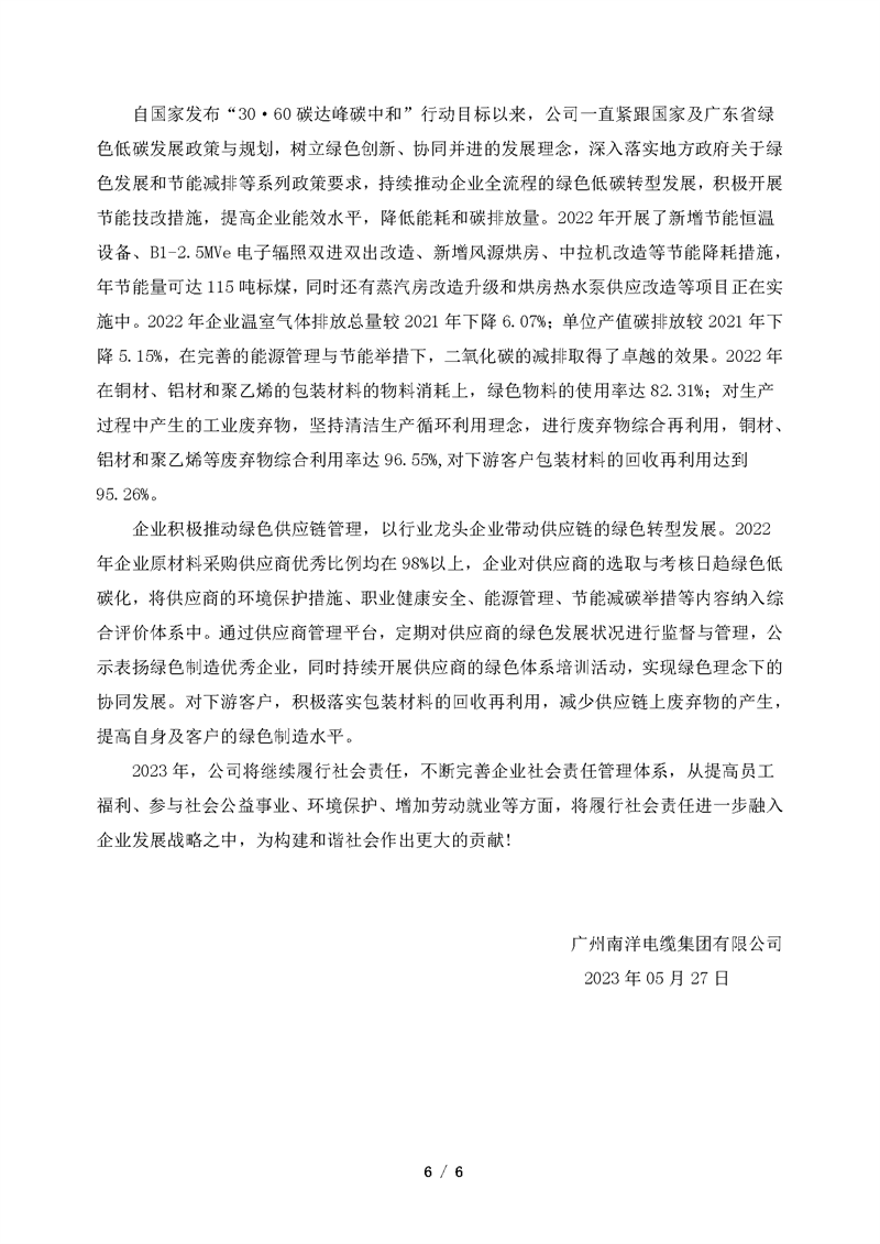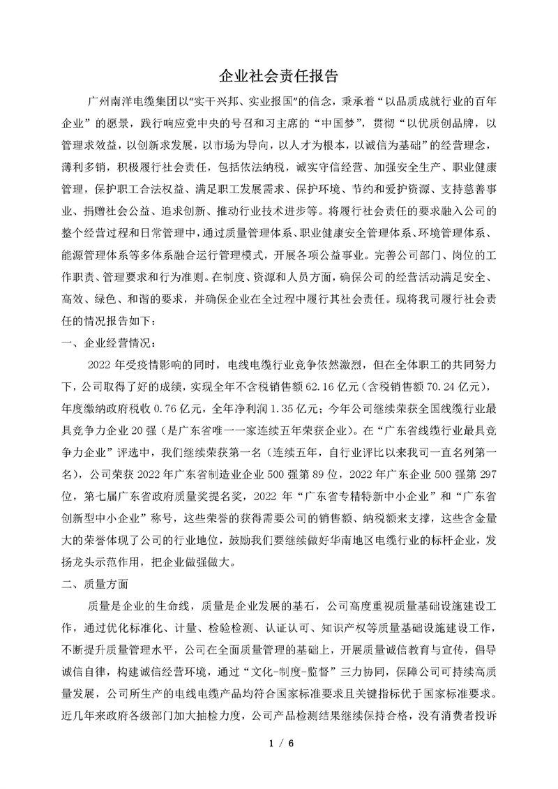 廣州南洋電纜集團(tuán)有限公司企業(yè)社會(huì)責(zé)任報(bào)告