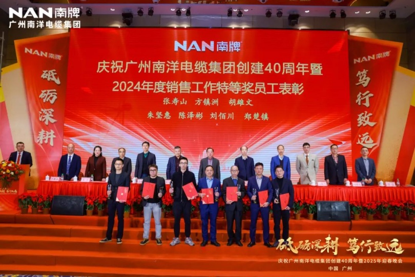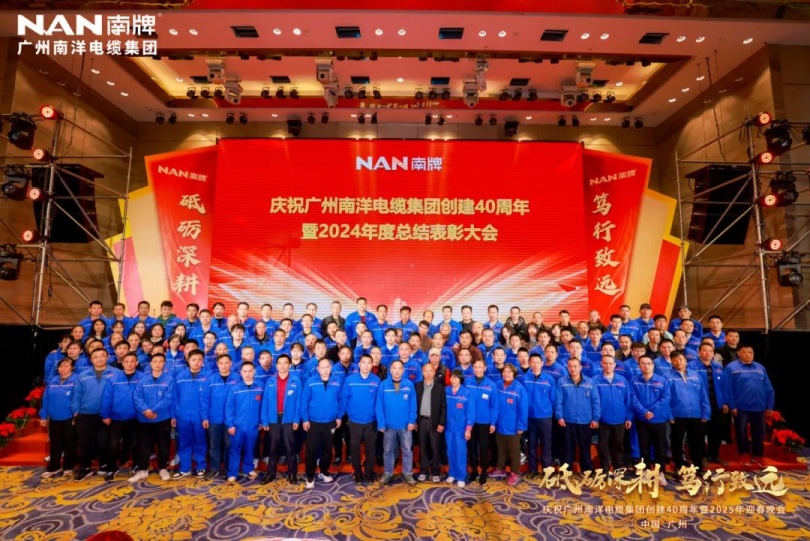 2025年1月11日,廣州南洋電纜集團在廣州長風凱萊酒店舉行了以“砥礪深耕 篤行致遠”為主題的創建40周年暨2024年總結表彰大會和2025年迎春晚會。創始人鄭鐘南、董事長鄭漢武、總經理章先杰、汕頭公司代表、天津公司代表、各區域銷售經理及經銷商、公司管理層及各部門員工共計800余人參加本次大會。